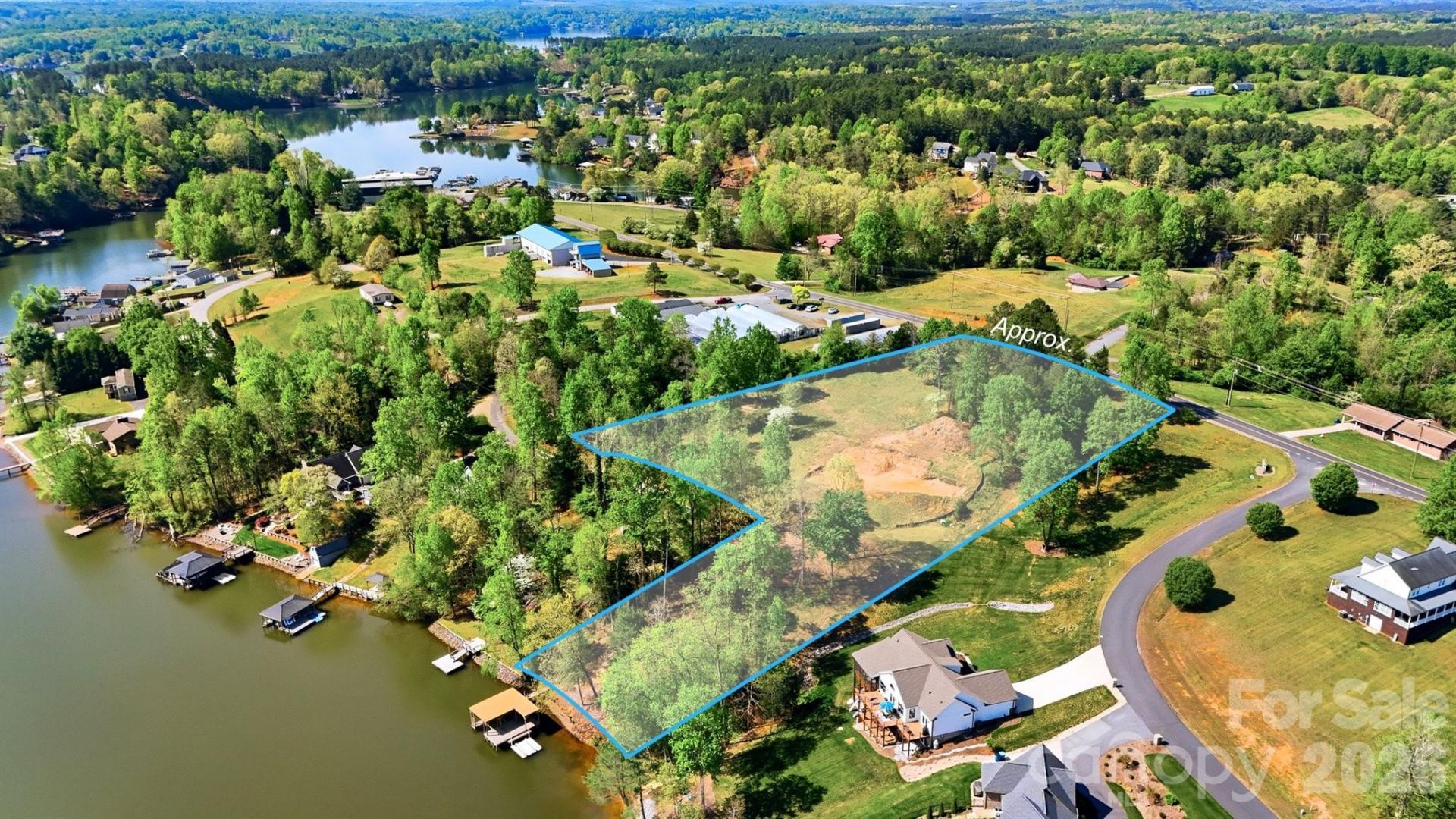 Experience the ultimate in lakefront luxury with this exclusive 2-ACRE WATERFRONT PROPERTY offering unparalleled privacy. Enter through the stately IRON GATE and follow your future private drive to the your personal lakeside retreat. This exceptional homesite features 131 FEET OF SHORELINE, a CLEARED BUILDING SITE with SILT FENCE in place, 4 BEDROOM SEPTIC PERMIT, SHORELINE STABILIZATION permit, SAW SERVICE available for connection, and a CUSTOM TWO-STORY BOAT DOCK with DOOZI Boat Lift and jet ski ramp. Architect designed and engineered stamped house plans are available for an additional cost for a 4 Bedroom Saddleback-style residence designed to embrace the water views from every vantage point! 3 of the 4 bedrooms are suites. There is more than enough room on the property for a 4 car garage/workshop. The land is ideal for entertaining, relaxing, or enjoying the tranquil sunsets that paint the water each evening. The building site is positioned to take advantage of the magnificent views of the expansive shoreline and serene natural setting, this rare property provides the perfect canvas to design your dream estate. A TRULY ONE-OF-A KIND OPPORTUNITY to own a premier piece of lakefront paradise. Enjoy North Carolina's 4 SEASONS!! Spend the weekends on the lake & visit the NC Mountains in your spare time!!! A little over an hour to Charlotte Douglas Airport!
